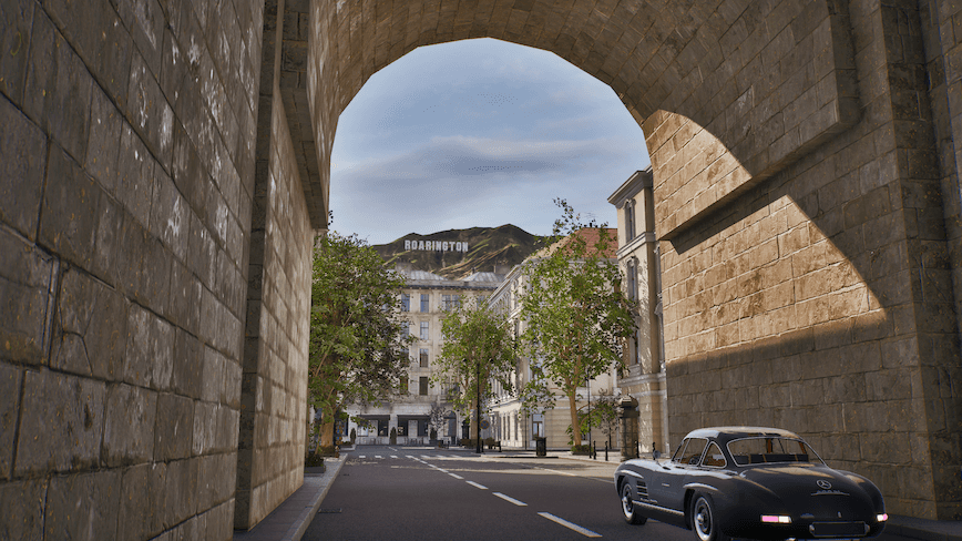 Preview the Roarington MetaLand with these selected pictures. The MetaLand offers beautiful leisure rides through geographically themed districts, visits to cities, a test track to practice racing, public and private garages and exhibition rooms of the most important classic cars, and much more.
